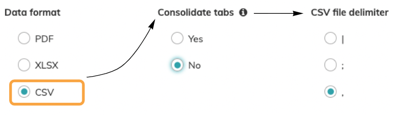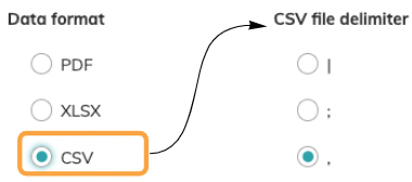 Subject Information: You can either choose PDF, XLSX or CSV. For CSV you can then select the file delimiter. | ![]() | |