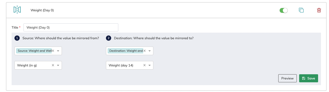 If you want to update your input fields inside the form setup, you can easily identify fields that are used either as a source or destination field inside a mirroring function:
