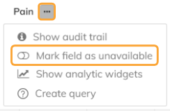 If you cannot answer a field that has been marked as required for various reasons, you can use the "..."-button next to the question to mark the field as unavailable. When you do this, the input field of the question disapperas and the following text appears: "Field marked as unavailable ...". You can always reverse this action.