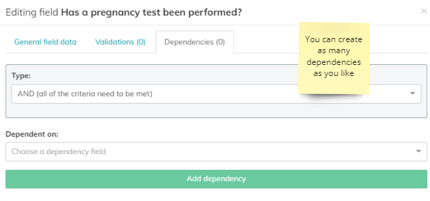 ⭐ Read the following article if you would like to find out what options you have for field dependencies in our system: All possible field dependencies