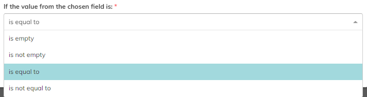 5.If needed (e.g. for "is equal to"), you can now select the option of the other input field to which the dependency should refer.