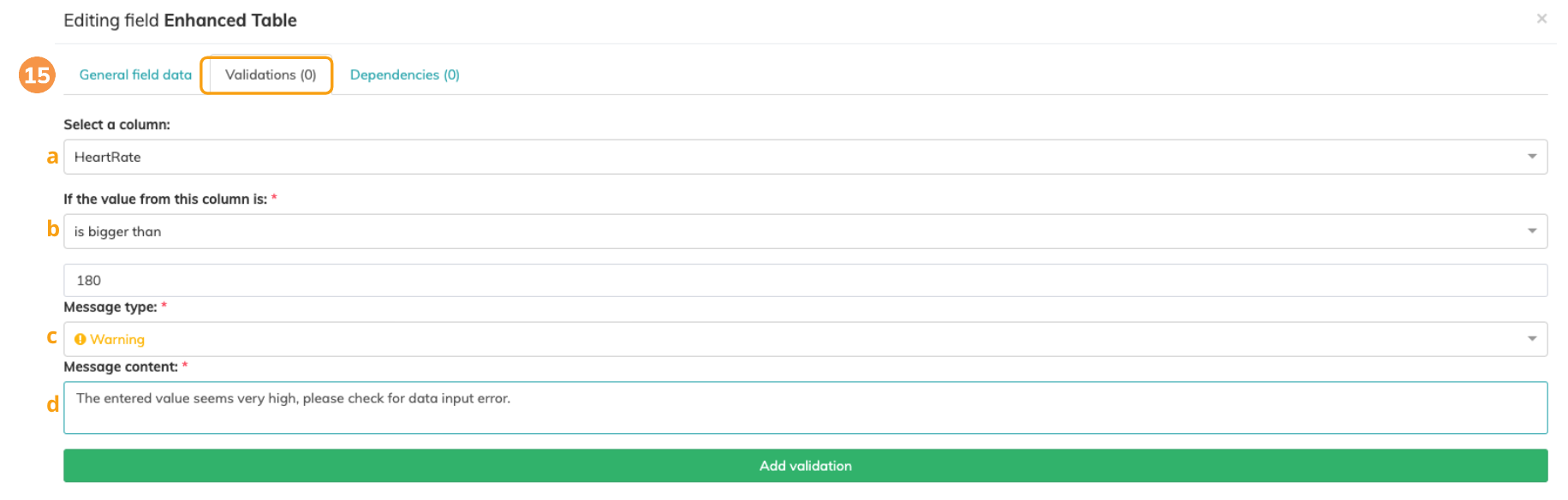 ![]() ⭐ Validation set-up in the trigger events (step 5) recommended It is possible to set up your field validations both in the input form (step 3) and the trigger events (step 5). However, we recommend setting up the validations in step 5 as here you have the possibility to create validations within and/or across input forms. |