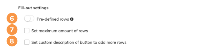 ![]() | Optional: Set up a pre-defined amount of rows for your table field and assign pre-defined row names. ⚠️ Be aware that fill-out users will not be able to add additional rows during form fill-out, if this setting is enabled. |