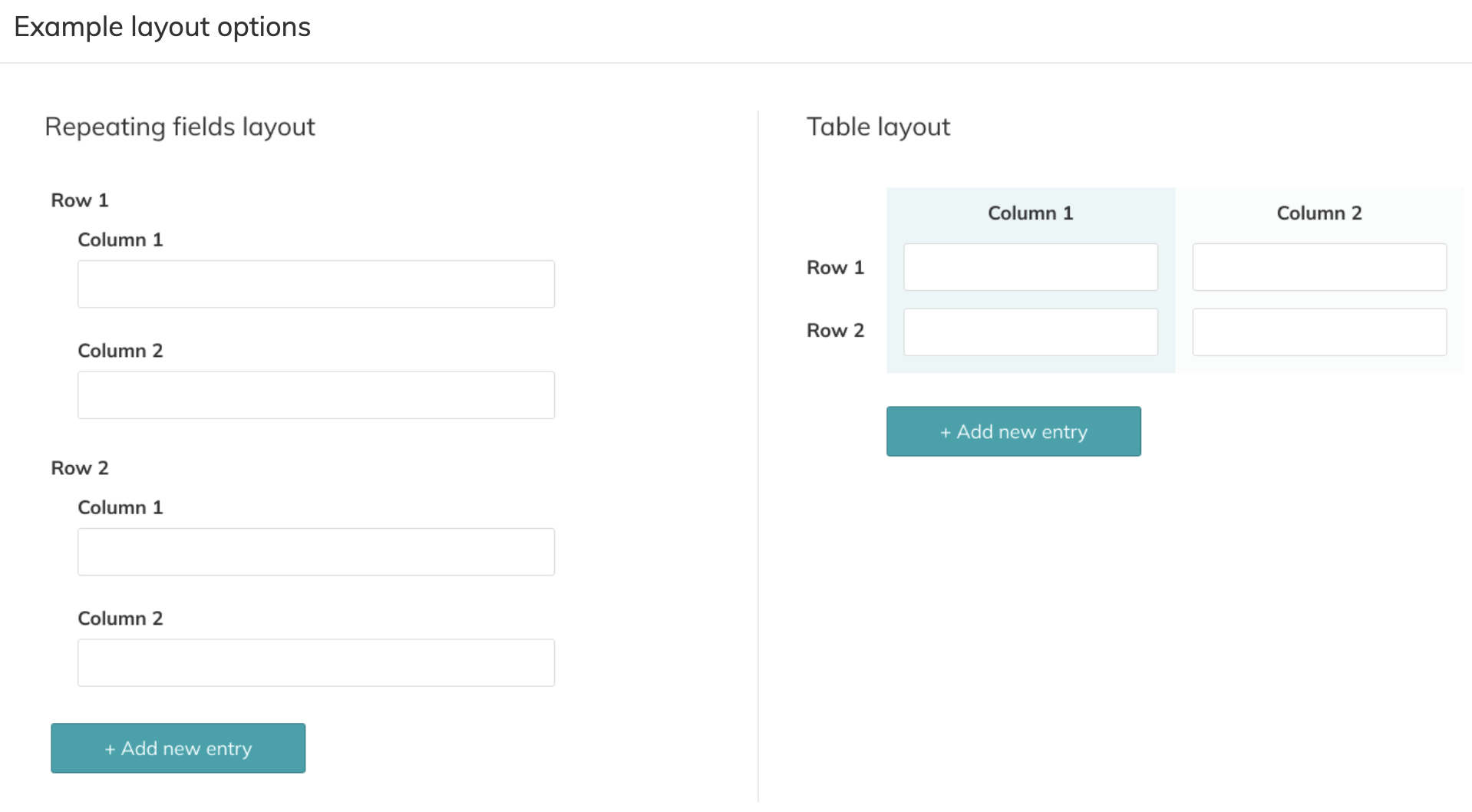 Learn how to set up a table or repeating fields and how to use the enhanced features.
