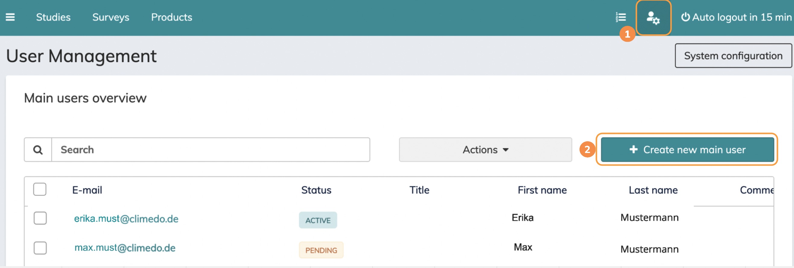 ⭐ Main User: Can act like "system admins" of the whole instance, e.g. Climedo Product Support or the customer themselves, e.g. the CRO or sponsor. |