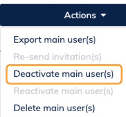To deactivate a main user, you need to check the box in front of the email address of your main user and choose via "Actions" to deactivate the main user.