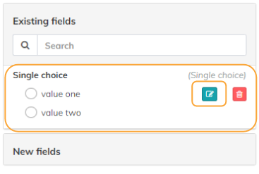 ![]() | If you save an input field as "reusable", this input field will appear in the list of "Existing fields" above the "New Fields". | |