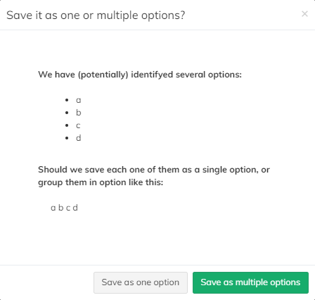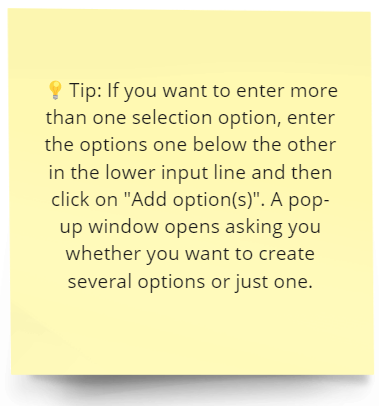 ![]() | If you want to enter more than two selection options, go to the lower field, enter you additional option(s) and then click on "Add option(s)". | |