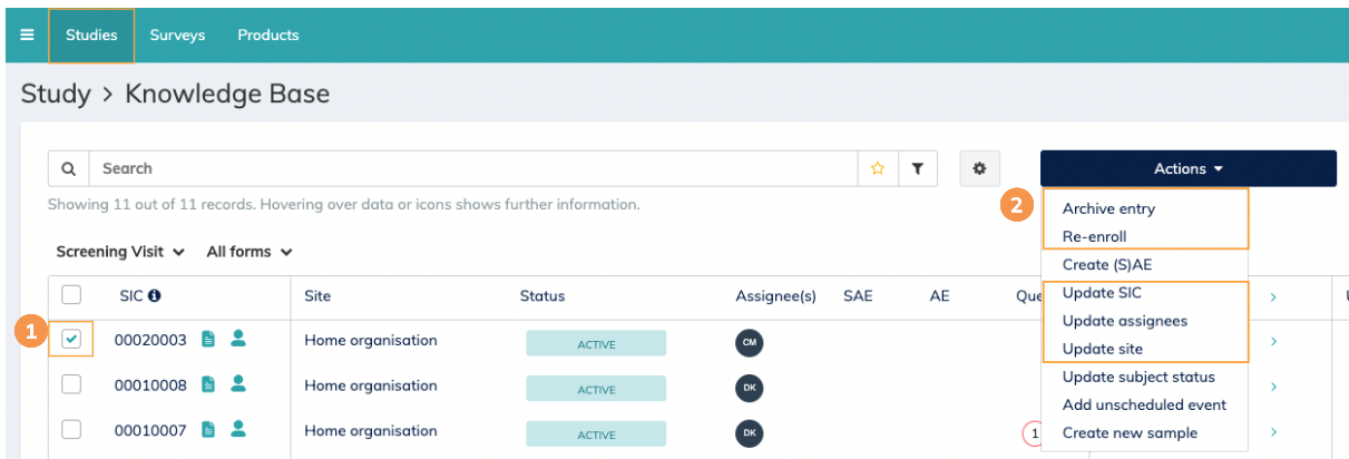 If you are authorized to do so, you can easily archive an entry, re-enroll subjects, update the SIC, assignee or site any time like this: