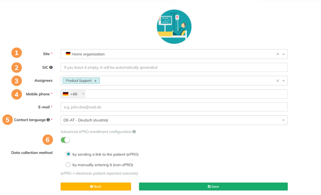 ![]() | For usage of ePRO you can additionally select a data collection method. For example, if a subject is not confident in using a link, you can also enter the data manually. |