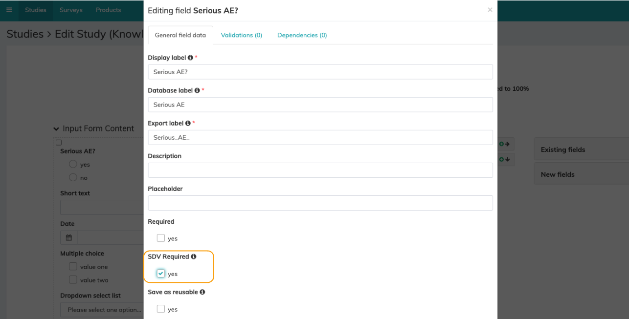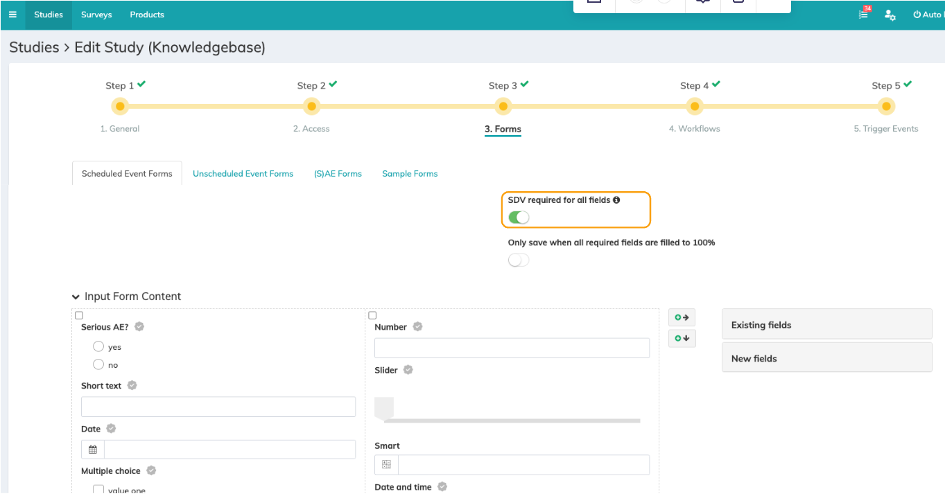 Within the input form settings, SDV can be activated in two ways: