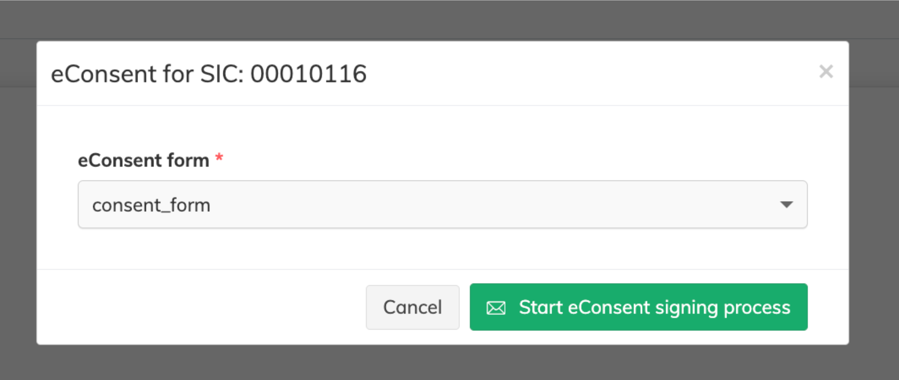 If there are multiple eConsent forms available for this subject, please make sure to select the suitable one from the dropdown list (e.g. based on the subject's language) and proceed with the action.