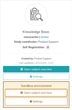 • In the study overview in the sandbox tile, click on Open subject overview to create or view the test patients.